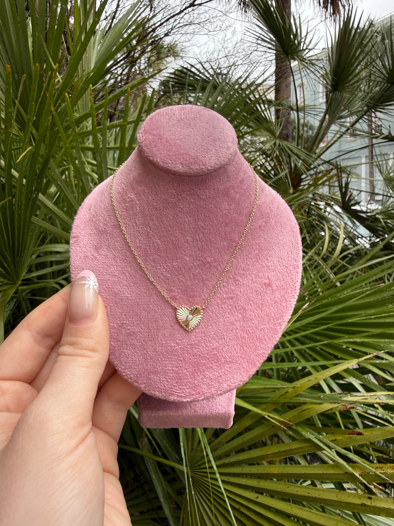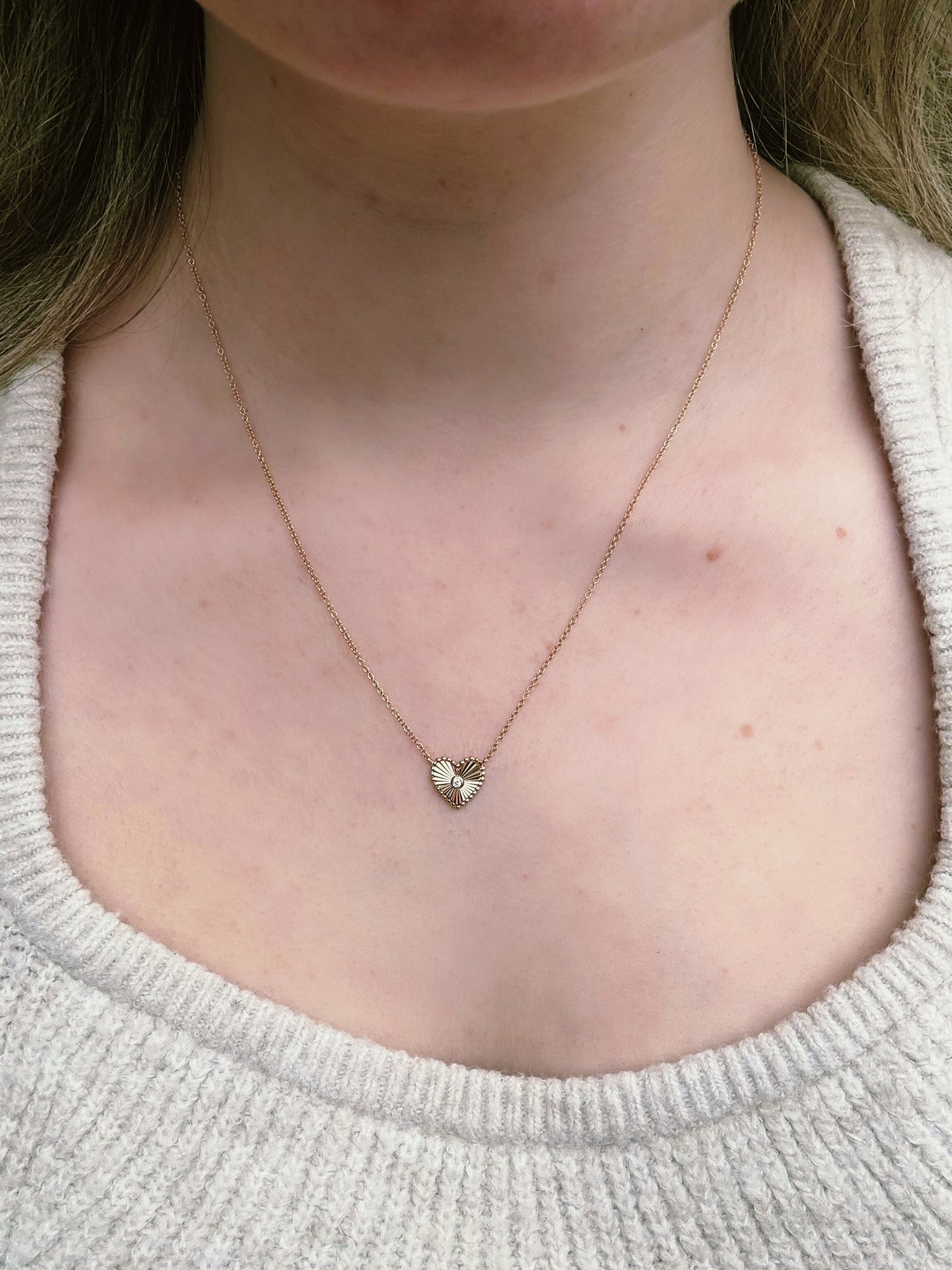 14 karat solid gold and diamond heart. Super light weight and dainty. A perfect piece to wear anywhere.